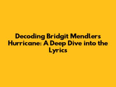 Hey guys! Today, we're diving deep into a fantastic song by the one and only Bridgit Mendler: "Hurricane." This track isn't just a catchy tune; it's packed with emotion and imagery that tells a powerful story. So, buckle up as we unpack the lyrics and explore what makes this song so special.