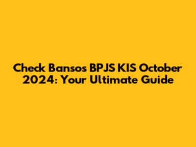 Check Bansos BPJS KIS October 2024: Easy Guide