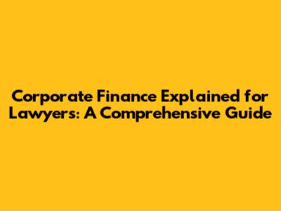 Corporate Finance Explained For Lawyers