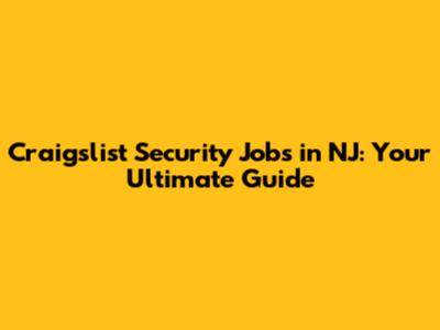 Craigslist Security Jobs In NJ: Your Guide