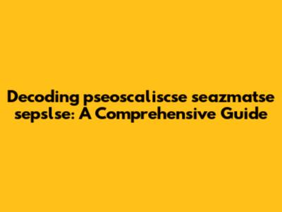 Decoding Pseoscaliscse Seazmatse Sepslse: A Comprehensive Guide