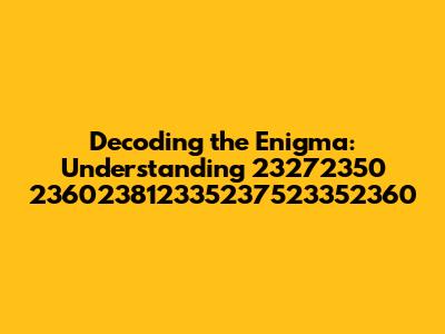 Decoding The Enigma: Understanding 23272350 236023812335237523352360