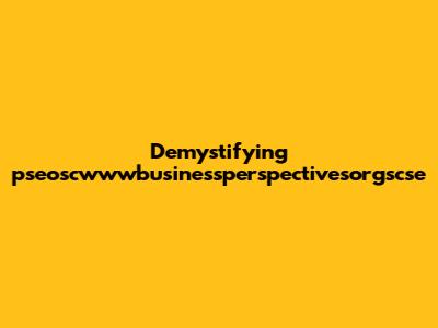 Demystifying Pseoscwwwbusinessperspectivesorgscse