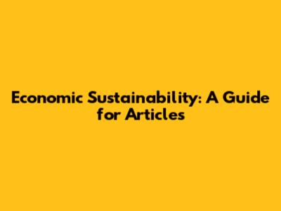 Economic Sustainability: A Guide For Articles