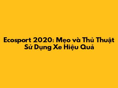 Ecosport 2020: Mẹo Và Thủ Thuật Sử Dụng Xe Hiệu Quả