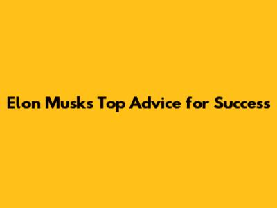 Elon Musk's Top Advice For Success