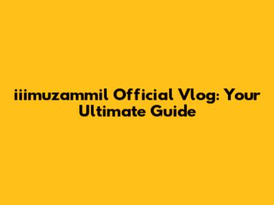 Iiimuzammil Official Vlog: Your Ultimate Guide