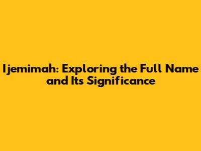 Ijemimah: Unveiling The Full Name & Its Meaning