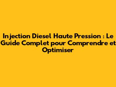 Injection Diesel Haute Pression: Le Guide Complet