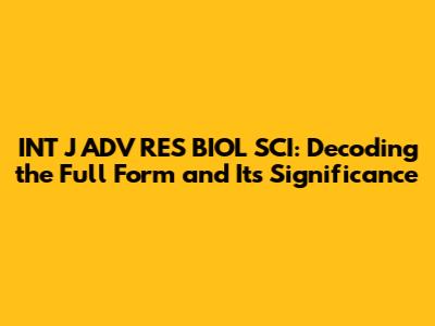 INT J ADV RES BIOL SCI: Full Form & Meaning Explained