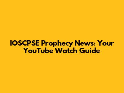 IOSCPSE Prophecy News: Your YouTube Watch Guide