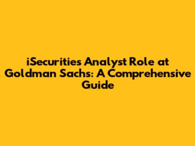 ISecurities Analyst Role At Goldman Sachs: A Comprehensive Guide