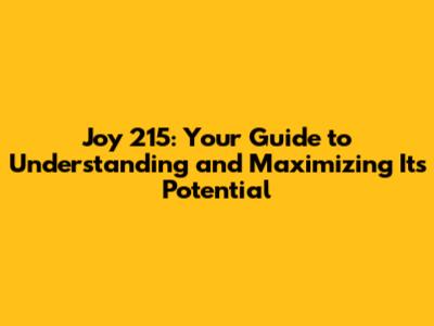 Joy 215: Your Guide To Understanding And Maximizing Its Potential