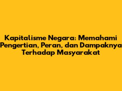 Memahami Pengertian Kapitalisme Negara