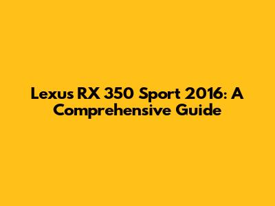 Lexus RX 350 Sport 2016: A Comprehensive Guide
