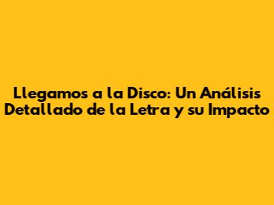 Llegamos A La Disco: Analizando La Letra En Profundidad