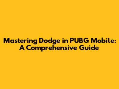 Mastering Dodge In PUBG Mobile: A Comprehensive Guide