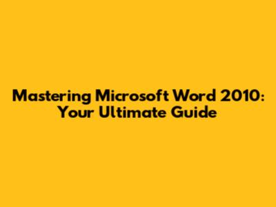 Mastering Microsoft Word 2010: Your Ultimate Guide