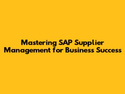 Mastering SAP Supplier Management For Business Success