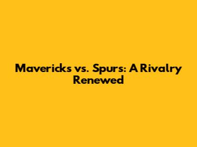 Mavericks Vs. Spurs: A Rivalry Renewed