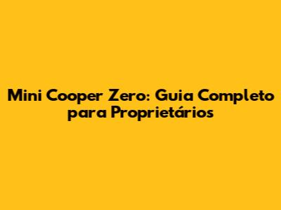 Mini Cooper Zero: Guia Completo Para Proprietários