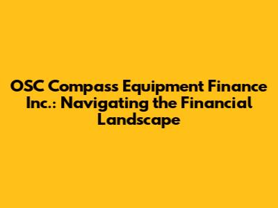 Hey there, finance enthusiasts! Ever heard of OSC Compass Equipment Finance Inc.? If you're knee-deep in the world of equipment financing, or maybe just dipping your toes in, then you're in the right place. This article is your ultimate guide, designed to break down everything you need to know about OSC Compass Equipment Finance Inc. – from what they do, to who they serve, and how they can potentially help you. So, buckle up, because we're about to embark on a journey to explore the world of equipment financing, with OSC Compass as our trusty compass!