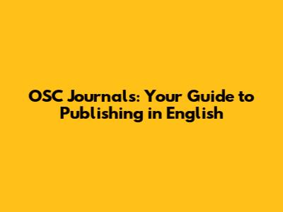 OSC Journals: Your Guide To Publishing In English
