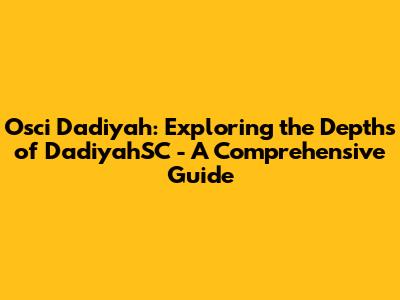 Osci Dadiyah: Exploring The Depths Of DadiyahSC - A Comprehensive Guide