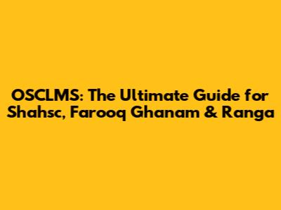 OSCLMS: The Ultimate Guide For Shahsc, Farooq Ghanam & Ranga