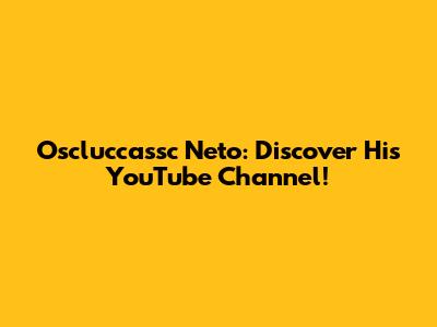 Oscluccassc Neto: Discover His YouTube Channel!
