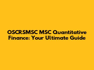 OSCRSMSC MSC Quant Finance: Your Ultimate Guide