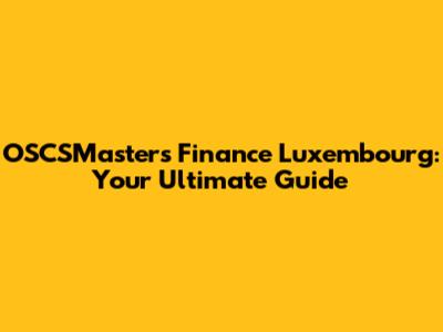 OSCSMasters Finance Luxembourg: Your Ultimate Guide
