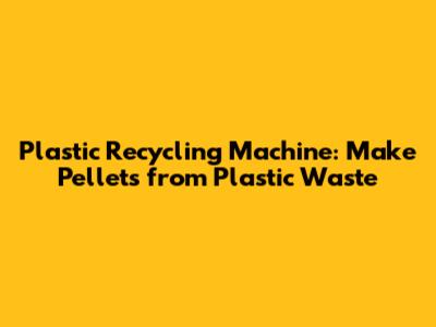 Plastic Recycling Machine: Make Pellets From Plastic Waste