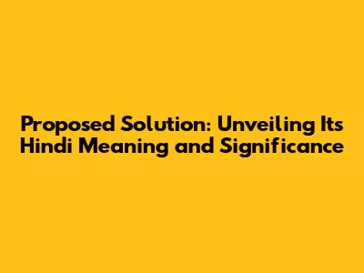 Proposed Solution: Meaning And Application In Hindi