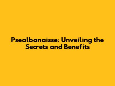 Psealbanaisse: Unveiling The Secrets And Benefits