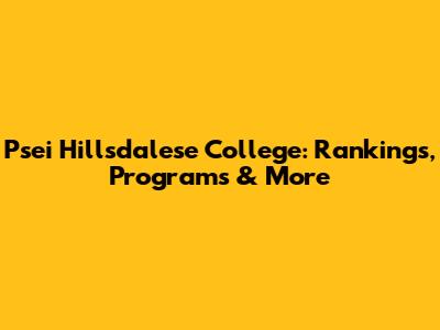 Let's dive into everything you need to know about Psei Hillsdalese College! Whether you're a prospective student, a current one, or just curious, we'll cover its rankings, programs, and all the cool stuff that makes this college tick. Think of this as your ultimate guide, designed to give you the inside scoop in a friendly, easy-to-understand way. So, buckle up, and let’s get started!