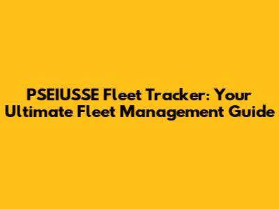 PSEIUSSE Fleet Tracker: Your Ultimate Fleet Management Guide