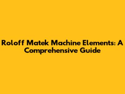 Roloff Matek Machine Elements: A Comprehensive Guide