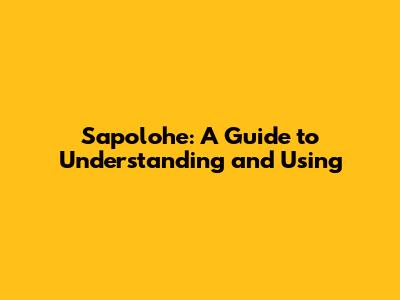 Sapolohe: A Guide To Understanding And Using