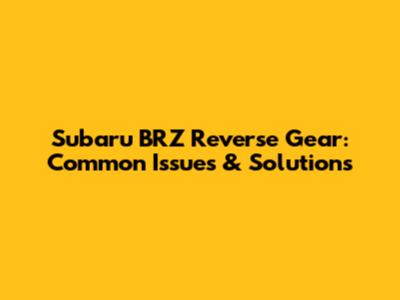 Subaru BRZ Reverse Gear: Common Issues & Fixes