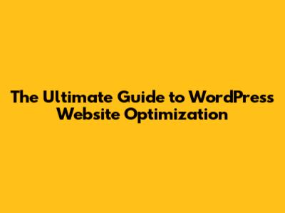 The Ultimate Guide To WordPress Website Optimization