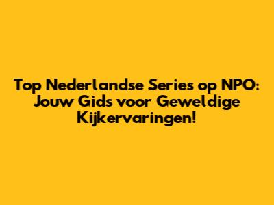 Top Nederlandse Series Op NPO: Jouw Gids Voor Geweldige Kijkervaringen!