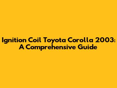 Hey guys! Ever had your trusty 2003 Toyota Corolla start acting up, maybe sputtering or losing power? One common culprit could be the ignition coil. Don't worry, you're not alone! The ignition coil is a vital part of your car's ignition system, and when it goes bad, it can cause all sorts of problems. In this guide, we'll dive deep into the world of ignition coils for your 2003 Toyota Corolla, covering everything from symptoms of a failing coil to replacement tips and tricks. So, buckle up and let's get started!