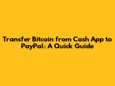 Transfer Bitcoin From Cash App To PayPal: A Quick Guide