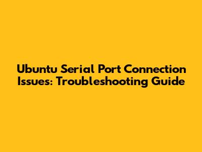 Ubuntu Serial Port Connection Issues: Troubleshooting Guide