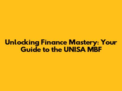 Unlocking Finance Mastery: Your Guide To The UNISA MBF