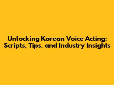Unlocking Korean Voice Acting: Scripts, Tips, And Industry Insights