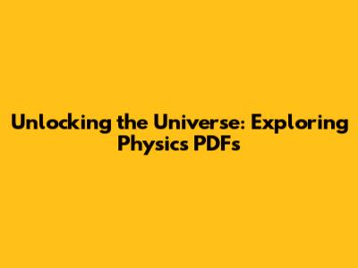 Popular Physics Topics to Explore in PDF Format