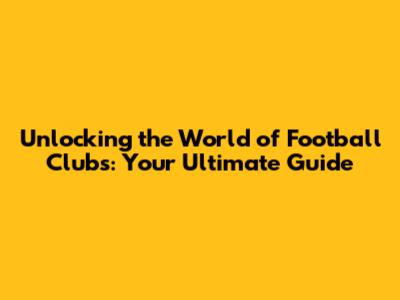 Unlocking The World Of Football Clubs: Your Ultimate Guide