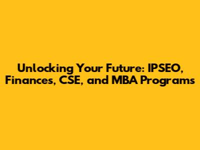Unlocking Your Future: IPSEO, Finances, CSE, And MBA Programs